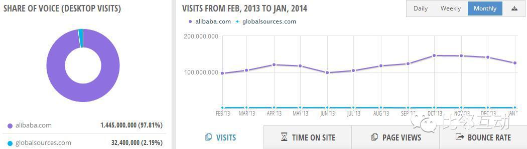 從網(wǎng)站日流量看,阿里巴巴遠遠超過環(huán)球資源。