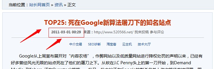 鏈接的文章的標題是TOP25: 死在Google新算法屠刀下的知名站點
