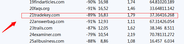 以上圖示表明:2011年2月谷歌展開對“內(nèi)容農(nóng)場”作弊以及低質(zhì)量網(wǎng)站進行降權(quán),tradekey作為b2b行業(yè)的網(wǎng)站不幸中標,通過谷歌過來的網(wǎng)站流量直接下降89%。
