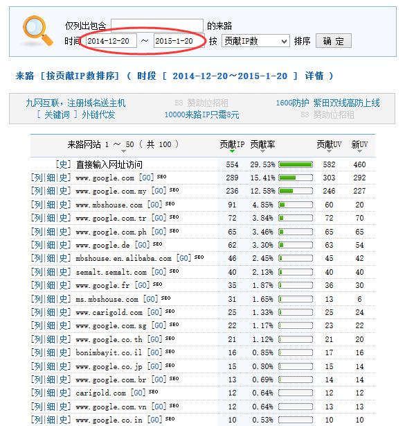3)月搜索引擎來路(包括各國google和其他搜索引擎的來路)展示: