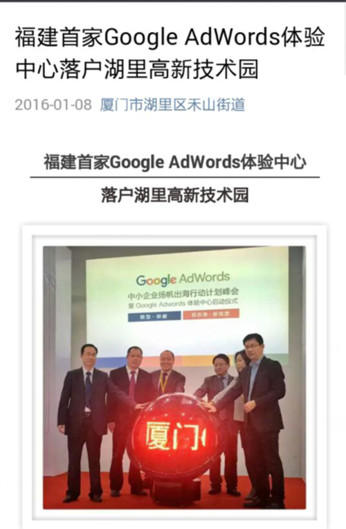 ? 湖里區(qū)商務(wù)局對(duì)廈門Google AdWords 體驗(yàn)中心項(xiàng)目啟動(dòng)事件的宣傳報(bào)道