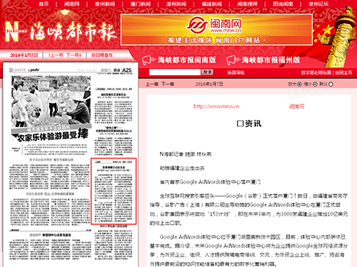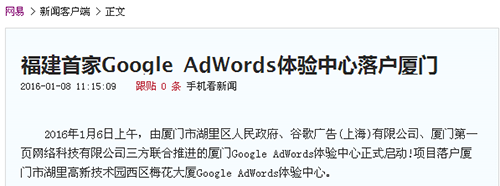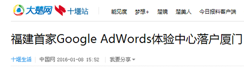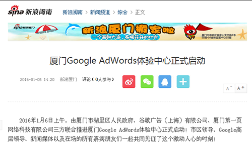 廈門Google AdWords 體驗(yàn)中心已于2016年1月6日正式啟動(dòng)。該項(xiàng)目的啟動(dòng)受到了政府的大力支持以及眾多媒體的持續(xù)關(guān)注。