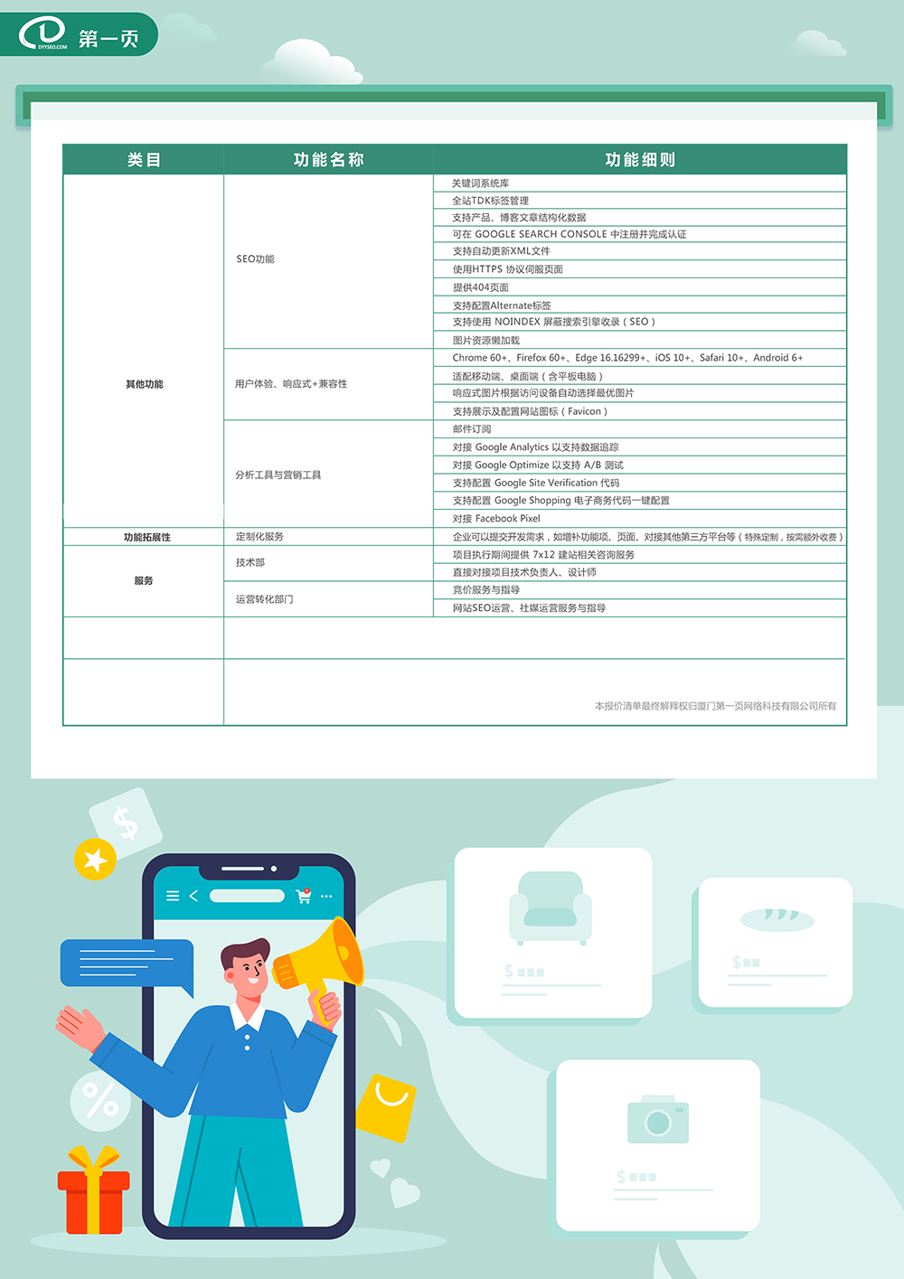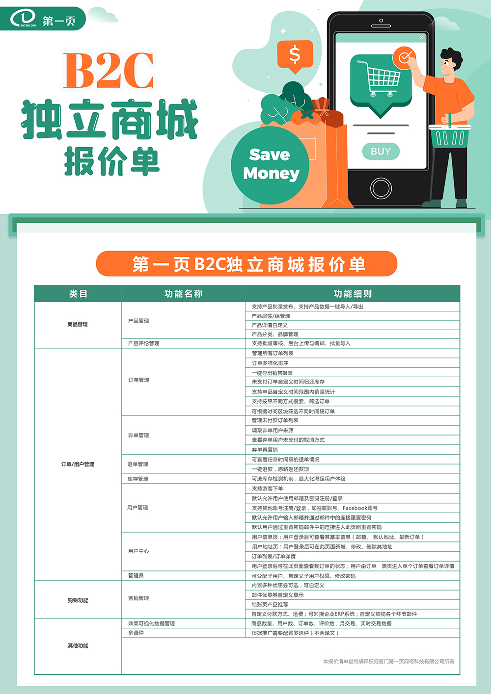 第一頁旨在全方位輔助中國的外貿(mào)企業(yè)揚(yáng)帆起航成功出海,把產(chǎn)品和服務(wù)推廣到全世界,在用心儲備與計(jì)劃了2-3年后,品牌定制商城站(B2C)正式推出推出市場。