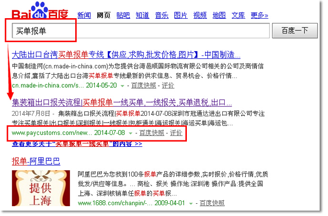 一線報(bào)關(guān),百度首頁第六位