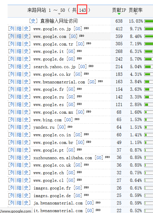 搜索引擎來路展示:(不同國家搜索引擎來源)