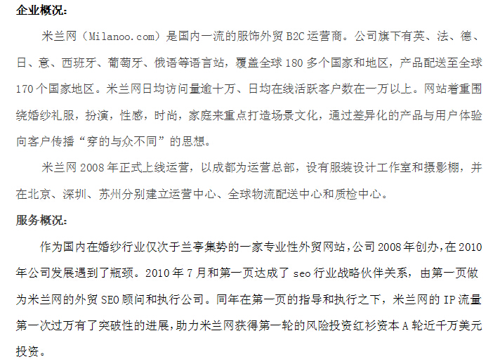 2010年7月第一頁網(wǎng)絡(luò)科技與米蘭網(wǎng)達成SEO戰(zhàn)略合作伙伴關(guān)系。